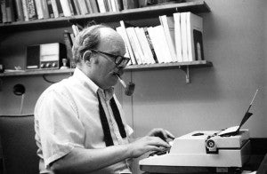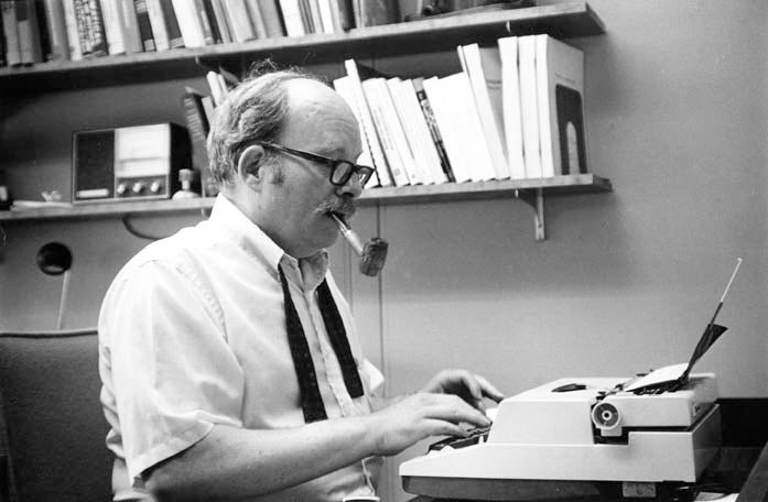 This is Dr. Geroge Handleman, mathematician and former Dean of Science. Besides the pipe, he was also freqently seen on campus with a small dog on a leash and, on those occasions, discretly avoided the library...