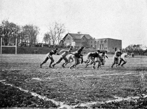 The first football game played on the '86 Field was held on September 29, 1906 against the Albany Business College. RPI won a very lopsided game, 68-0. "Two fifteen minute halves were played, and the contest became merely an exhibition, in which numerous substitutes were tried out by the 'Tech team." [ The Polytechnic, Oct. 18, 1906] The new field was apparently an inspiration to the team and increased school spirit. The first league game was won against Hamilton 2-0. "When we returned last fall and found the '86 Athletic Field all ready for use, we knew that this would be a very different season. Nor were we disappointed. The students manifested some real college spirit, and the team did the rest." [1908 Transit]