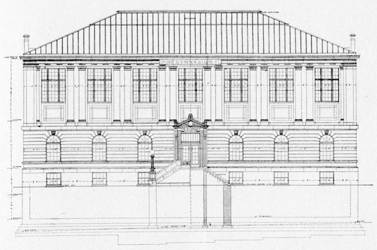 Lawlor & Haase, the architects of the Walker Chemical Laboratory and Russell Sage Laboratory, were retained as architects. Dr. Dudley Allen Sargent of Harvard University, an eminent authority on college gymnasiums, was hired as project consultant. The construction contract was awarded to the Whitney-Steen Company of New York City. According to The Polytechnic, “The gymnasium is designed in the current American classical style. It primarily is colonial of the Georgian period and detailed in classical Italian.” It was built of Harvard brick, laid in Flemish bond style with limestone trim and a copper roof. The swimming pool was to be a duplicate of the Carnegie pool at Yale. Total cost of constructing and equipping the building was $150,000. Ground was broken for the building on September 12, 1911 and work was completed in November 1912.