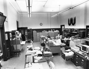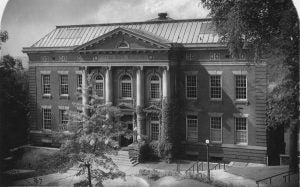 From 1893 to 1912 Rensselaer’s administrative offices were located in the Alumni Building on Troy’s Second Street. The building also housed the Institute’s library and teaching collections for geology and mineralogy. Located a half-mile from the main campus, the building was inconvenient for both students and administrators. In 1909, at the mid-winter alumni dinner in Pittsburgh, the Alumni Association of Pittsburgh pledged $125,000 to build a new administration building closer to campus on the former site of the Ranken House. The building, made of Harvard brick and Indiana limestone, was designed by W.G. Wilkins, a Pittsburgh alumnus, who donated his services. The structure was formally presented and dedicated on Alumni Day, June 13, 1911, though it was not completed until February 1912.