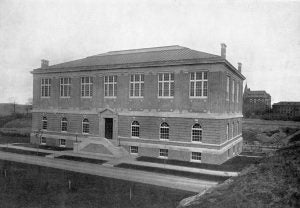 The ’87 Gymnasium was dedicated in June 1912. Planning for the new facility went back a couple of years earlier to 1910 when a Board of Trustees committee was established to investigate the feasibility of developing a department of physical culture at the Institute. The committee concluded that a completely equipped modern gymnasium was necessary if such a department was to be established. In June 1911 Stewart Johnson, Class of ’87 and a member of the Board of Trustees, announced that his class would finance the construction and equipping of the building. Lawlor & Haase, the architects of the Walker Chemical Laboratory and Russell Sage Laboratory, were retained as architects. Dr. Dudley Allen Sargent of Harvard University, an eminent authority on college gymnasiums, was hired as project consultant.
